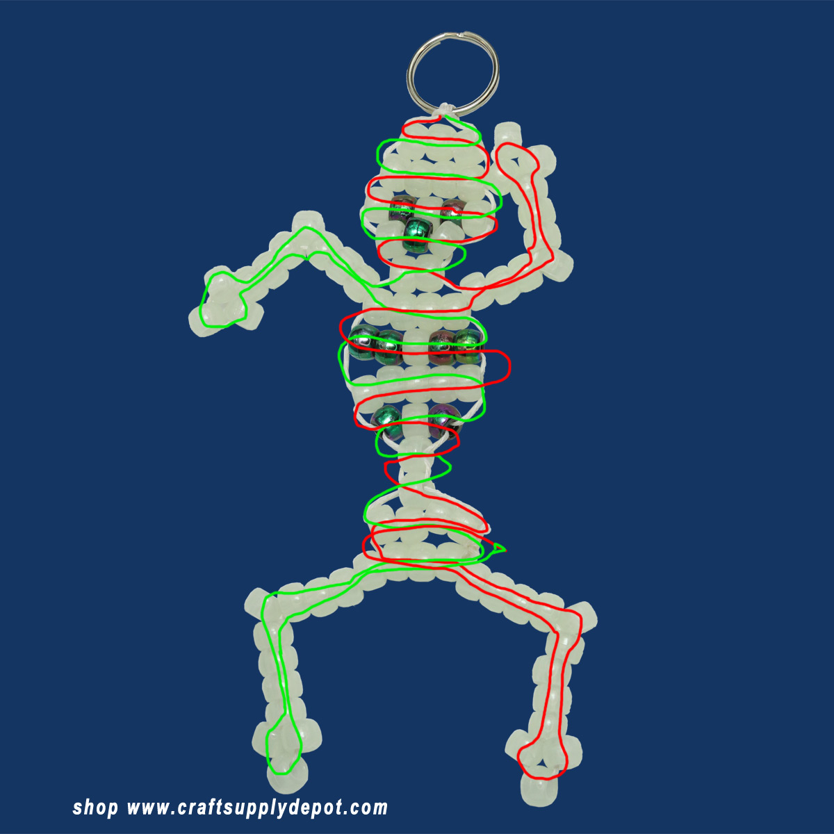 There are lots of different types of cords you can use. We prefer a cord that is 1mm to 2mm thick because it helps your skeleton keychain keep it's shape better. Alternatively, you could use a thinner cord and weave a little wire or a pipe cleaner into your keychain to help it keep it's shape that way. Either way works just fine but you can experiment with it to see which method you prefer.